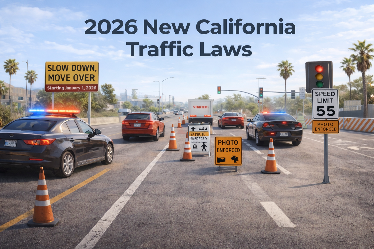 自 2026 年起,加州將正式擴大自動化交通執法措施,重點法案包括 AB 289(施工區測速攝影) 與 SB 720(紅燈攝影系統)。兩項法案皆以「民事罰則」為處理原則,目標在於提升道路安全,而非增加刑事處罰。
